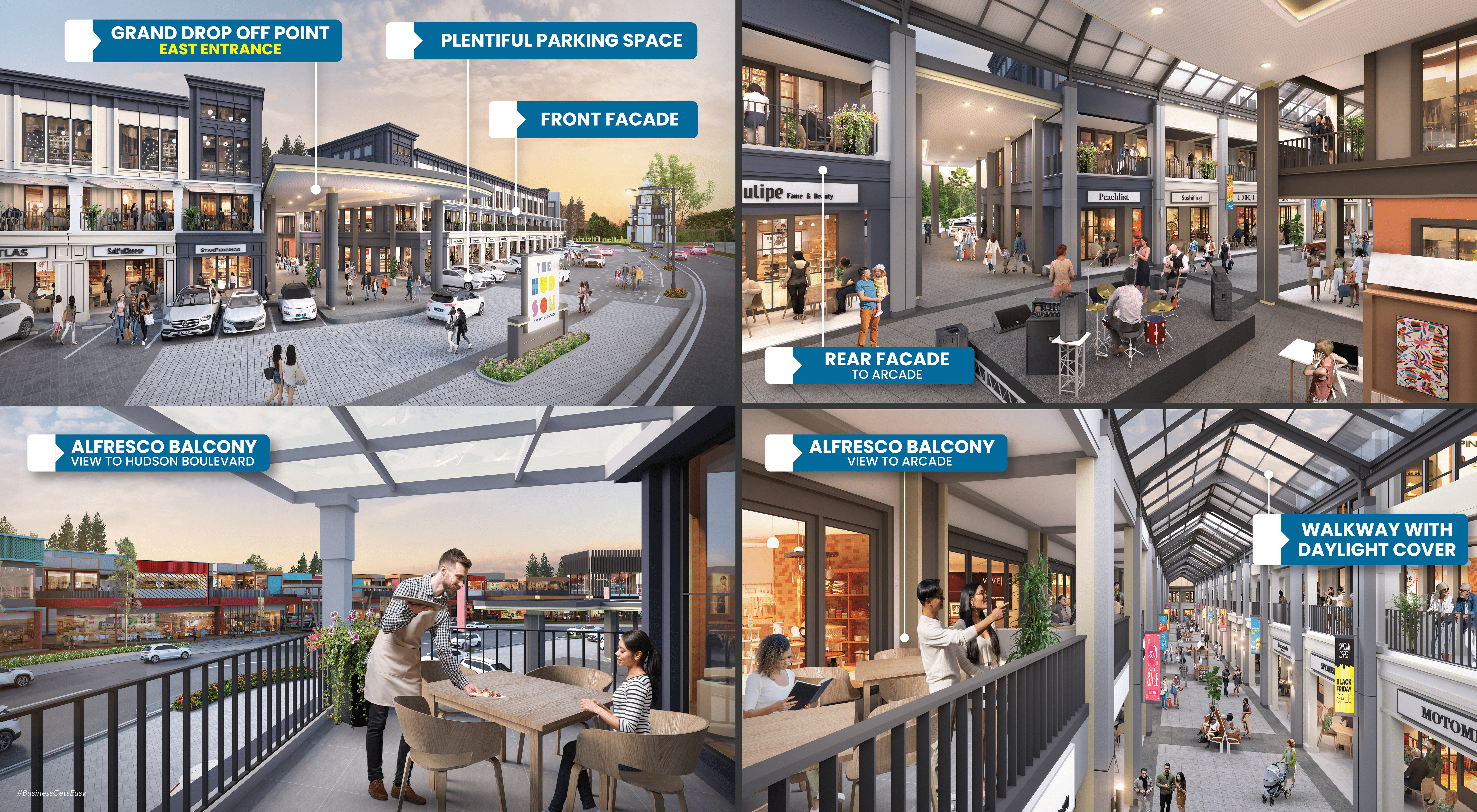 The Hudson dibangun untuk menjadi destinasi wisata belanja paling hype di kawasan Gading Serpong dengan hadirnya konsep Shopping Arcade sepanjang 410 meter. Didukung oleh kehadiran Hudson Square sebagai salah satu crowd puller kawasan Manhattan District, maka The Hudson akan semakin prospektif untuk para pemilik usaha dan semakin menarik bagi para pengunjung yang ingin menikmati suasana berbeda dalam berbelanja.